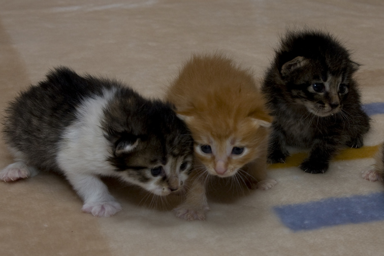 10 day old kittens which had been abandoned in a cardboard box.