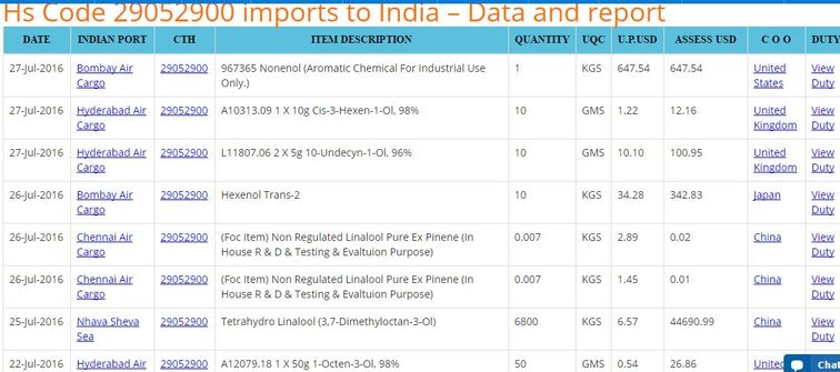 For resolving the Hs Code 29052900 Import Queries; you can gather information by taking the help of our professional experts. You can go through with our website for check out the live demo samples of database and there is a search box for searching the Hs code. You can also download the database at free of cost. This Hs Code covers all the details of Hexenol.