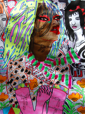 Painting (Ink,Pens,Acrylics,Markers,Photos)on Cardboard-Size:33cm x 48cm-Untitled1042-Year:2008-Price:1560 $/1000 Euro