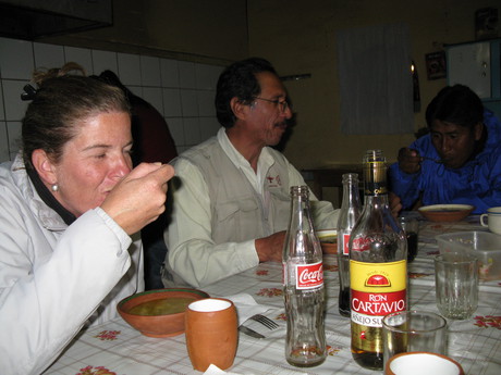 dinner in the kitchen at the restaurant, Taquile Island, Lake Titicaca, Peru
