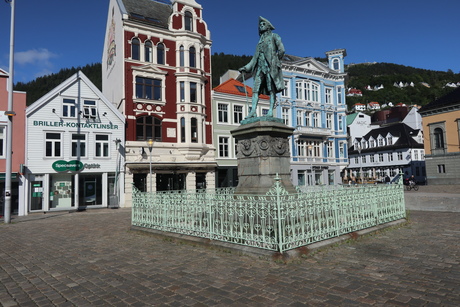 statue of Ludvig Holberg in Bergen, an author born 1684 in Bergen, Norway, died 1754 in Copenhagen Denmark. Statue by by John Børjeson. Unveiled 1884