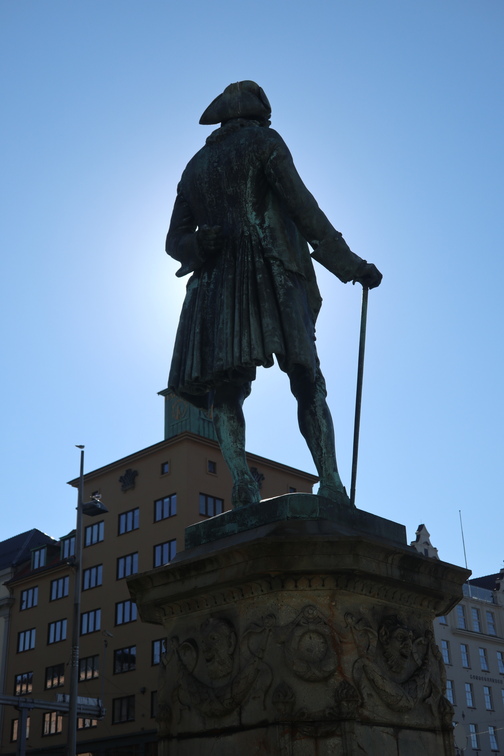 statue of Ludvig Holberg in Bergen, an author born 1684 in Bergen, Norway, died 1754 in Copenhagen Denmark. Statue by by John Børjeson. Unveiled 1884
