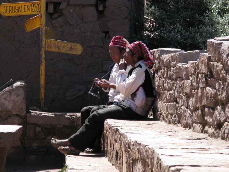 ![]() a man knitting, Taquile Island, Lake Titicaca, Peru