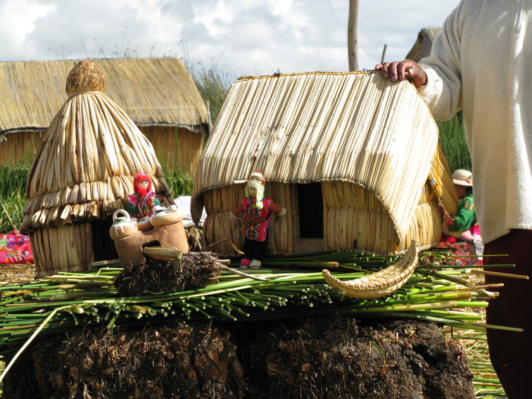 models of a Uros island, Uros islands, Lake Titicaca, Peru