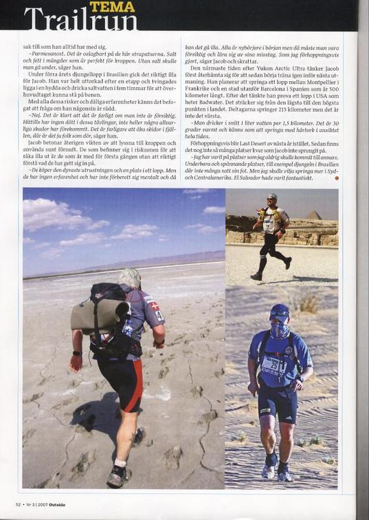 Artikel i svenske outside magazine nr 3 2007. Jacob Nielsen Dansk Endurance athlet.