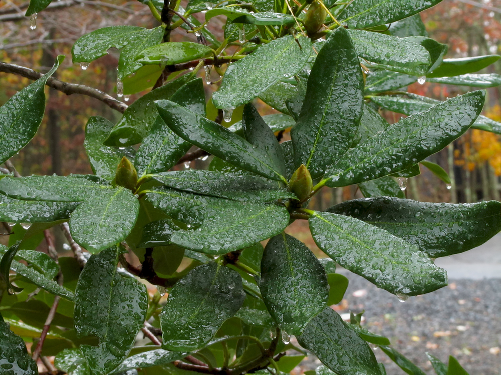 Light Coating of Ice on Rhododendron Leaves