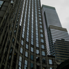 |   The Ring ▬▬▬▬▬ Tempietto Plaza, 135 East 57th St. @ Lexington Ave., Manhattan, NYC, NY. Full spectrum grayscale photo... ✎ The 31 story curved granite office building was completed in 1987 to the design of architect Kohn Pedersen Fox. In front of the building sits the tempietto -- a tall, open ring supported by columns -- over a circular seating area with side fountains. The ring obviously ties in with the curved arc of the tower's main entrance façade facing the plaza and was left open to afford dramatic, framed views of the tower. |  |