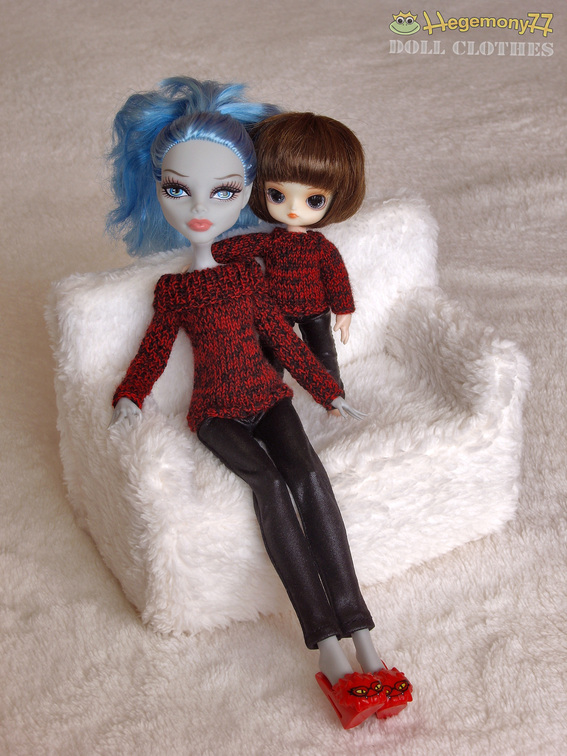 ![]() Monster High and 11 cm Obitsu Drta Doll in almost the same clothes on furry couch