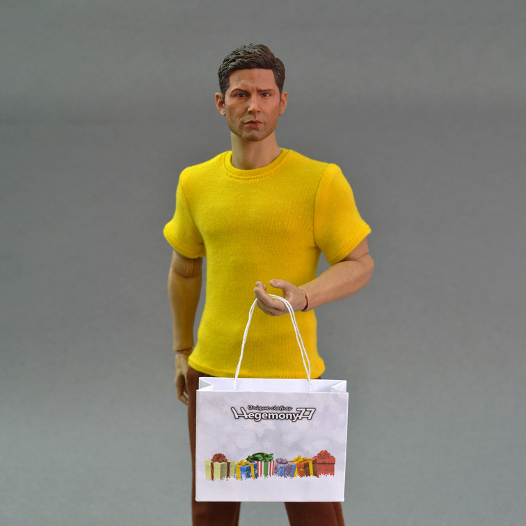 1/ 6 scale 12 inch custom kitbash figure yellow T-shirt paper bag with gift boxes- https://www.hegemony77.com/