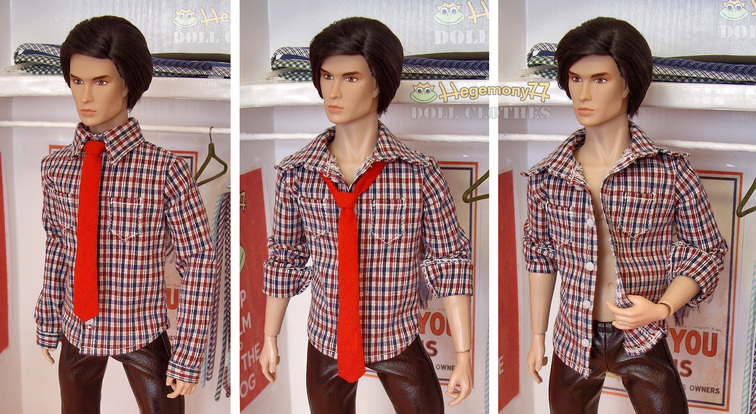 ![]() Fashion Royalty Homme in sixth scale red blue white plaid shirt with real working buttons buttonholes and tie