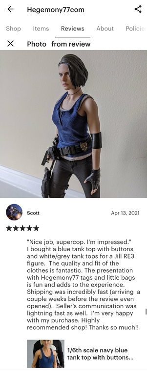 1/ 6 scale custom kit bash Jill RE3 female figure photo by customer - tank tops by Hegemony77- https://www.hegemony77.com/