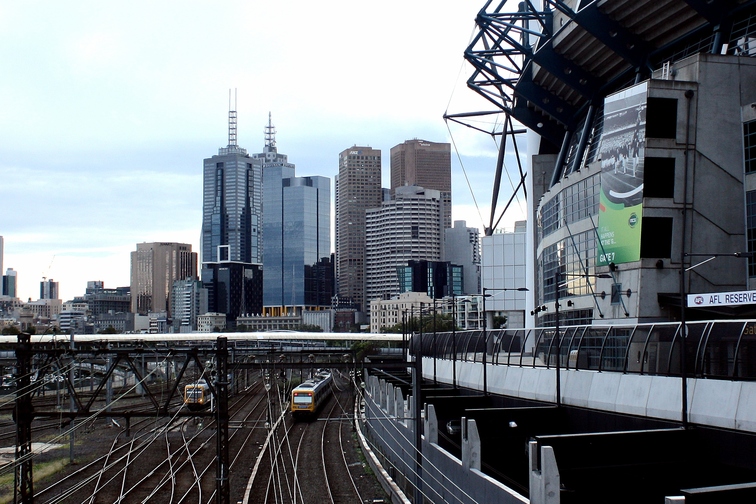 An overcast day. Taken from a Footbridge to the Tennis Centre.