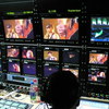 Make-up artist making eye visage to beautiful woman