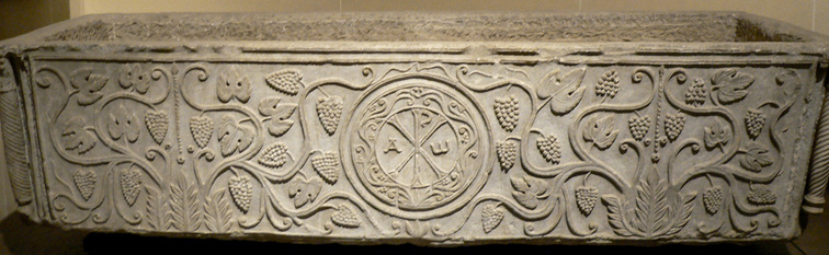 La cuve est ornée d'un décor végétal ; au centre, un chrisme. Cuve de sarcophage Département des Antiquités grecques, étrusques et romaines |