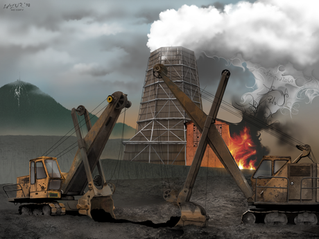 excavator chimney walbrzych industrial smoke grey lazur Tomek pietek tomasz piętek grafik animator ilustrator amiga graphic illustration photoshop paint brush rysunek ilustracja grafika demoscena demoscene scene