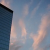 Die Hochhäuser "Castor" und "Pollux" stehen in Frankfurt genau gegenüber und haben Spiegelfassaden. Fotografiert man frontal oder schräg das eine, sieht man immer auch das andere. Hier sieht man Castor, das kleinere (16 Etagen).  |