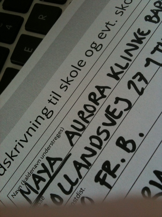 January 29: Signing Maya-monkey-madness up for school. Freaking only slightly out.