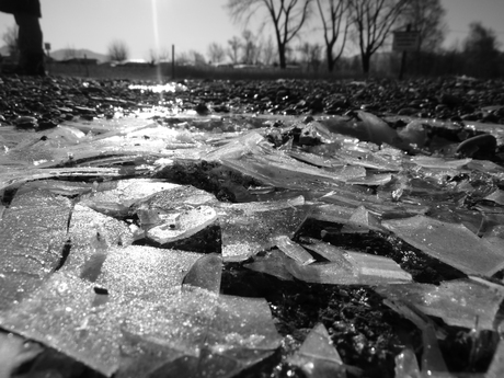 I wanted to take a picture of the frozen puddle, but than my kids went over it for fun and the ice was broken...so I used what was left..