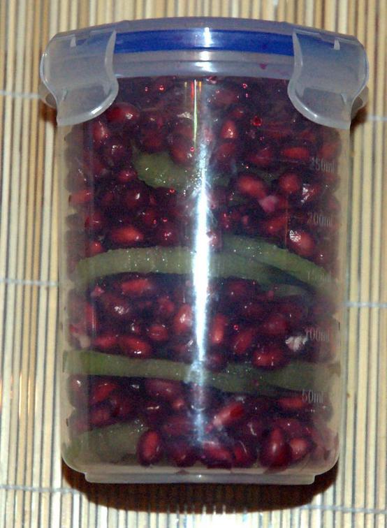Pomegranate seeds with kiwi slices