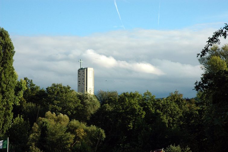 Late summer sunday afternoon at Karlsruhe/Germany. Clear blue sky, sun and cosy warm air. But theres is a rainstorm coming up.