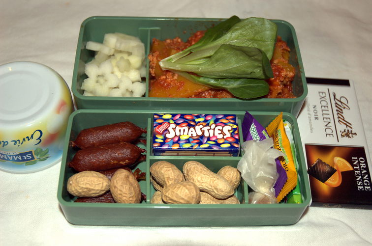 Heute gibts nix aussergewöhnliches. Einfach eine Zusammenstellung aus bereits im Vorrat vorhandenen Lebensmitteln. von links nach rechts: |