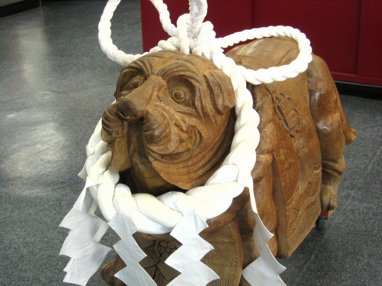 Statue of a fighting dog