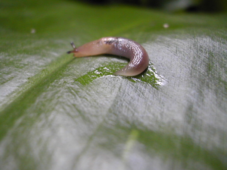 Tiny slug on a leaf at Arnhem zoo.