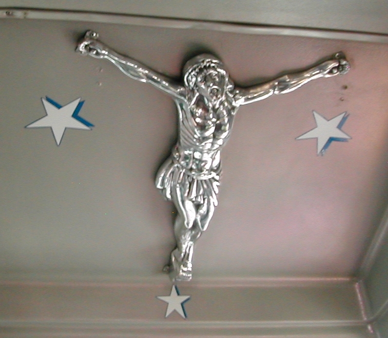 This awesome Jesus was on the ceiling in the bus to the Teotihuacan ruins. I just had to take a picture of it! |