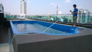 Last day - Clean the pool using the manual vacuum and adjust the chemicals.