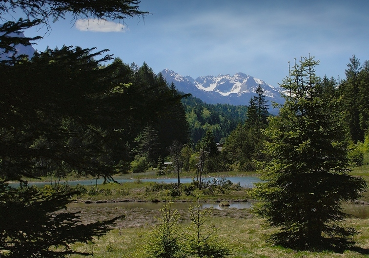 Looking across to the outflow weir and the Hahnenkamm of Reutte / Blick auf den Auslass und den Reuttener Hahnenkamm |