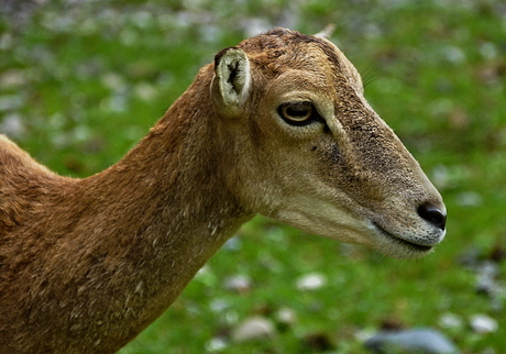 Portrait of an ewe from the side. / Portrait des Weibchens im Profil. |