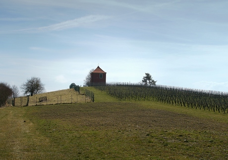 Facing the tall mountain ranges of the Alps across the lake, the 454m wine and overlook hill got a really funny name. Note the fallow deer enclosure on the north facing slope and vineyard on the south one. / Gegenueber der alpinen Gebirgszuege am anderen Ufer, hat der 454m hohe Aussichtshuegel und Weinberg wirklich einen lustigen Namen. Auf dem Nordhang ist ein Damwildgehege und der Suedhang ist natuerlich ein Weinberg. |