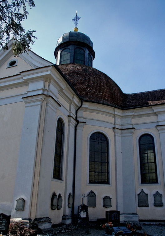 More correctly Sancta Maria Victoria, erectet at the order of Abbot Stefan Jung by builder Franz Beer in 1710. / Genauer Maria vom Sieg, auf Anweisung des Abtes Stefan Jung vom Baumeiser Franz Beer anno 1710 erbaut. |
