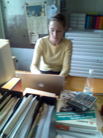 Nanna thinking hard about a direct mail for "efterskoler" and "højskoler" /Sandra