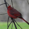 Cardinal tolerating the House Finches