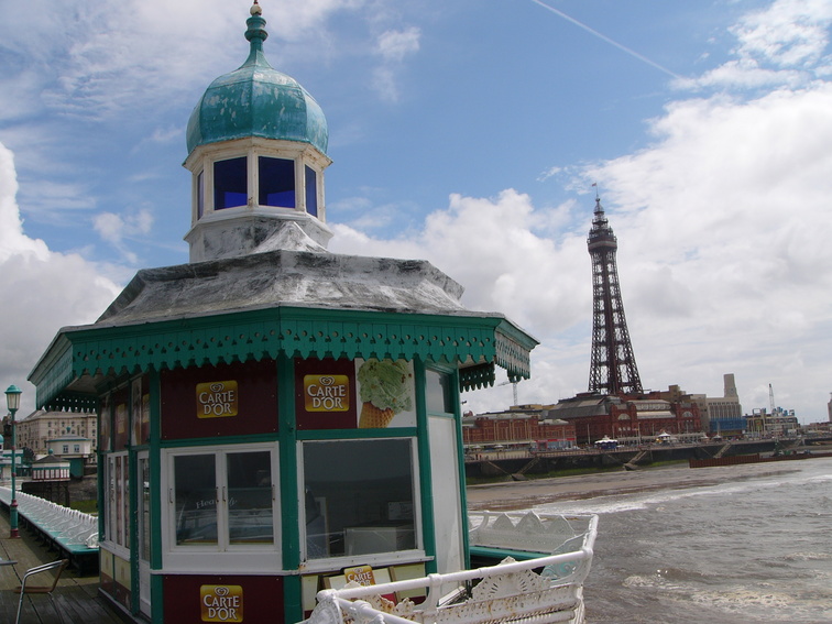 ![]() Ice cream kiosk and tower, North Pier, Blackpool.