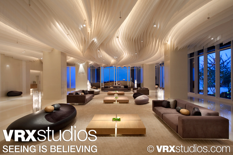 This spacious and contemporary lobby at the Hilton Pattaya was beautifully captured by one of VRX Studios' architectural photographers. |