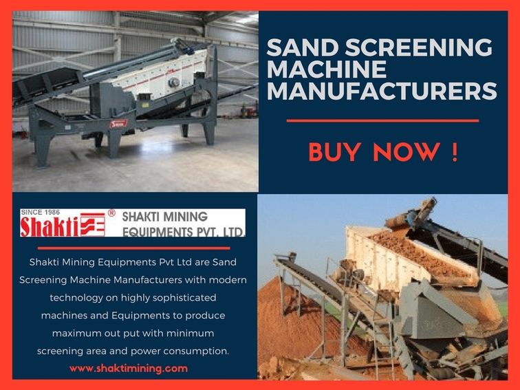 Shakti Mining Equipments Pvt Ltd are Sand Screening Machine Manufacturers with modern technology on highly sophisticated machines and Equipments to produce maximum out put with minimum screening area and power consumption.
