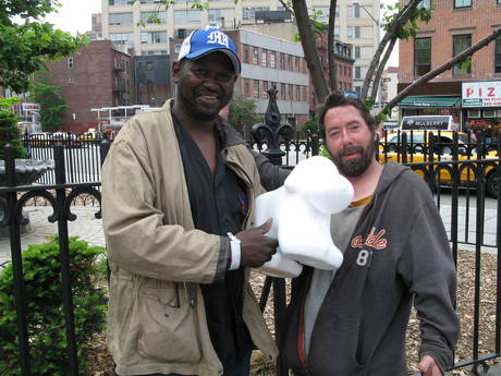 Woofy with two new friends at the streets of Manhattan
