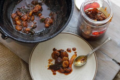 Quichentell's Prawn Pickle Recipe offers an intriguing and delightful twist to traditional Indian pickles. This recipe combines succulent prawns with a vibrant mix of spices like fenugreek, mustard seeds, and turmeric, imbued with the tanginess of vinegar and the subtle heat of green chilies. Each prawn is marinated and cooked to perfection, ensuring that the flavors are bold and well-incorporated. This pickle is not just a condiment but a celebration of flavors that can elevate simple meals or be enjoyed as a standalone snack. The Prawn Pickle stands out for its ability to blend the seafood's natural sweetness with the intense flavor profile typical of Indian pickles, making it a must-try for anyone looking to explore new culinary experiences.