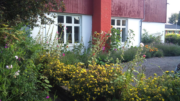 ![]() Have foran et af husene på Bornholms højskole.