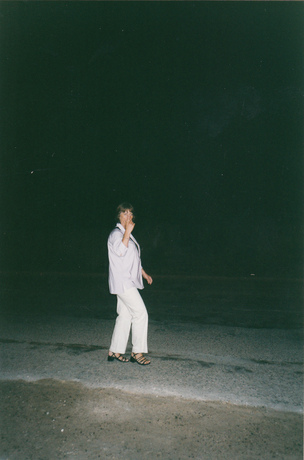Kom nu Tina. Aino på vej i mørket ud og spise. Djerba 2003.