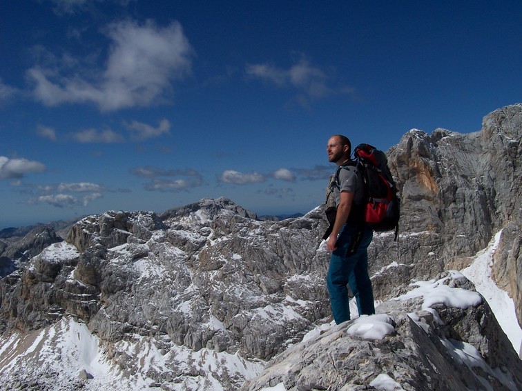 L'aguerrit alpinista contempla el formidable paisatge que es mostra als seus peus mentre medita profundament: "Osti, m'estic cremant la calvorota".