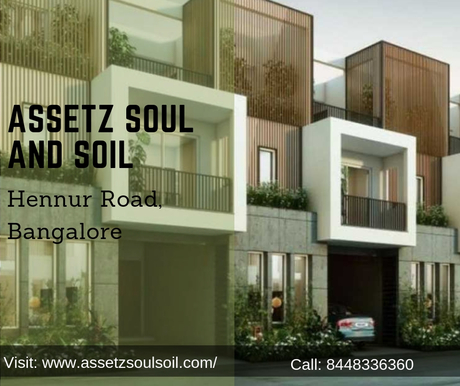 Assetz Soul and Soil is a new marvelous residential development coming up at Hennur Road, Bangalore. Project is an assimilation of 3,4 BHK lush row houses ranging in area from 2182 to 2532 sq.ft. Various modern amenities are merged in the project like gym, kids play area, open space, meditation centre, multipirpose hall, theatre, swimming pool and many more. Assetz Soul and Soul price range starts from Rs.1.92 crs and goes upto Rs.2.22 crs.