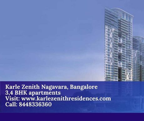 Karle Zenith Residences is a well-equipped residential project developed by Karle Infra. Located in Hebbal, Bangalore. Karle Zenith Residences offers 3 BHK and 4 BHK luxurious Apartments in Bangalore. The master plan of Karle Zenith Residences ensures that these Apartments in Hebbal are Vastu compliant to present its residents with a cheerful mood and blissful life throughout all seasons. The project is facilitated with all the amenities and needs of the residents