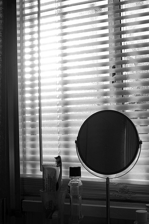 my humble bathroom, but in real life, it is in color not black & white, heh heh
