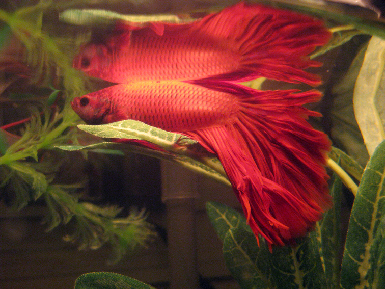 yes! mister Kiyo here is my fish pet, a great red friend, a friend says that his fins look like hair, he seems to enjoy sleeping on top of his tall plant ;)