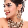 Royal rajwada necklace set is designed on gold plated brass metal with delightful embellishment of stones, diamantes and mina work is enhancing its charm. Wonderful necklace is jazzed up with matching earring, tikka and ravishing bracelet. Get an outstanding look in this stunning jewellery. |