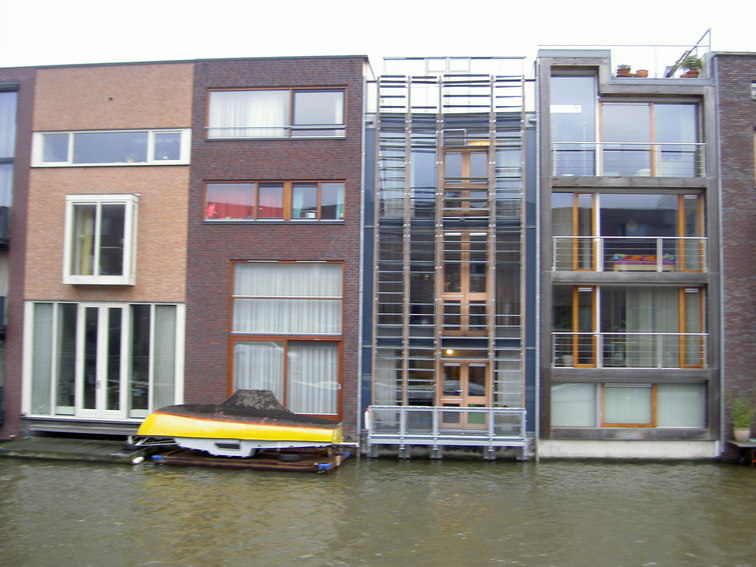 Huse på Scheepstimmermanstraat på Borneo Island i Amsterdam - set fra vandsiden