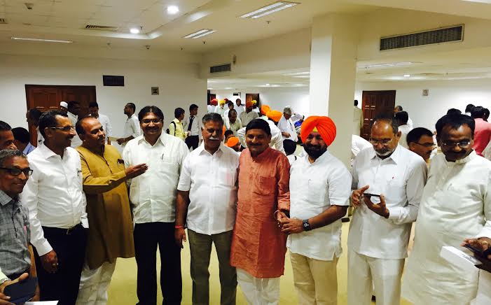 Sukhminderpal Singh Grewal with Sukhnandan Choudhary Minister, Public Health Engineering and Irrigation, Flood Control Department Jammu and Kashmir Government, Babu Bhai Jewalia Chairman Gujarat Government with Leaders from different States in Vigyan Bhawan, New Delhi |
